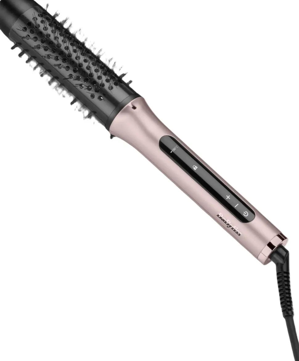 Rund 38 mm lang keramisk termisk cylinder Blanding af silikone og antistatiske børstehårKold spids til nem styling Ionisk pleje af kruset hår Digitalt display 4 varmetrin: 145 °C, 160 °C, 175 °C og 190 °C Hurtig opvarmning Kompatibelt med flere strømspændinger Varmefast måtte 1,8 m drejeledning 3 års garanti