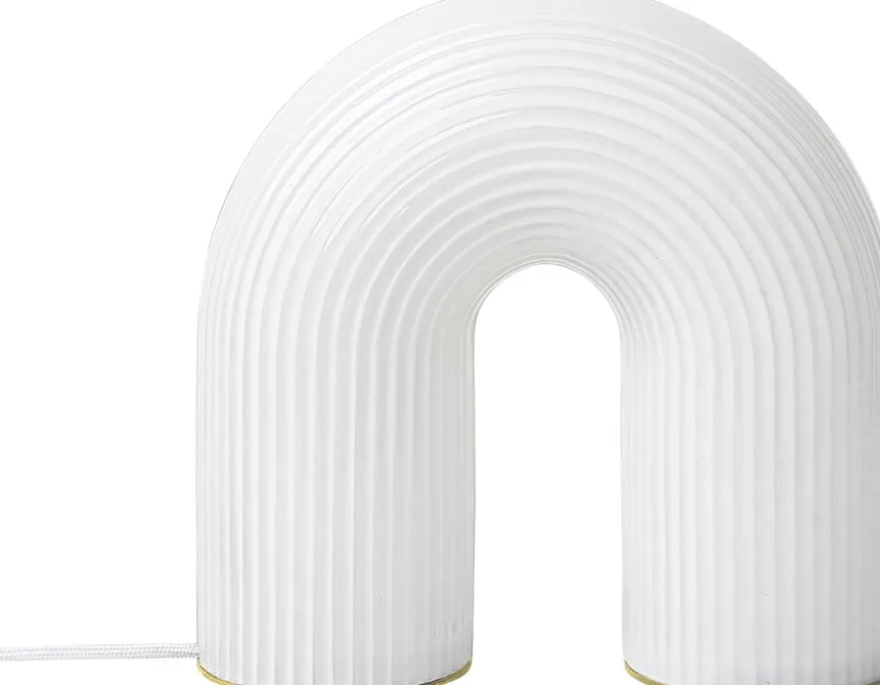 Vuelta-lampen er en prangende lyskilde med en skulpturel bue, der minder om gamle søjler. Den er lavet af opalglas med en rillet overflade, som giver den et tiltrækkende stofligt udtryk. Den er designet med en LED-lyskilde, der udsender et blødt, diffust lys, og den er udstyret med en justerbar lysdæmper til det ultimative stemningslys. Brug den som en dekorativ lampe i et mørkt hjørne eller på en hylde for at lyse bogsamlingen op.