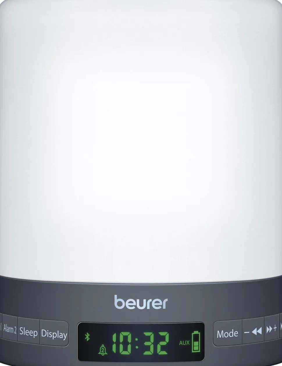 Denne wake-up light vækker dig på en blid og naturlig måde om morgenen med simuleret solopgang. Wake-up lampen WL 50 er en multi-funktions lampe, som hjælper dig op om morgenen og ligeledes hjælper dig til at falde i søvn om aftenen. Med simuleret solopgang og solnedgang, hjælper lampen dig tilbage i en naturlig døgnrytme, så du kan få det bedste ud af din dag og falde i søvn på en naturlig og behagelige måde om aftenen. WL 50 har 3 lysstyrker og lyser med 900 lux på en afstand af 10 cm. Wake-up lighten har alarm funktion med indstilling af 2 alarmer, snooze funktion i op til 30 minutter, radio med mulighed for at gemme 10 radiokanaler, 2 wake-up melodier og 1 melodi til at falde i søvn til. WL 50 har også mood light med mange forskellige farver. Som en ekstra feature kan du også afspille din egen musik fra denne wake-up light, da den også fungerer som Bluetooth højttaler. Der medfølger også et AUX kabel til afspilning af musik fra sin mobil via AUX. Lysstyrken i displayet kan også indstilles, så du ikke forstyrres af lyset om natten. WL 50 kan også bruges trådløst, da den er genopladelig. Den kan bruges i ca. 3 timer (med lydstyrke på 15 og lysstyrken på 1). Mikro USB kabel samt USB til stikkontakt adapter medfølger.