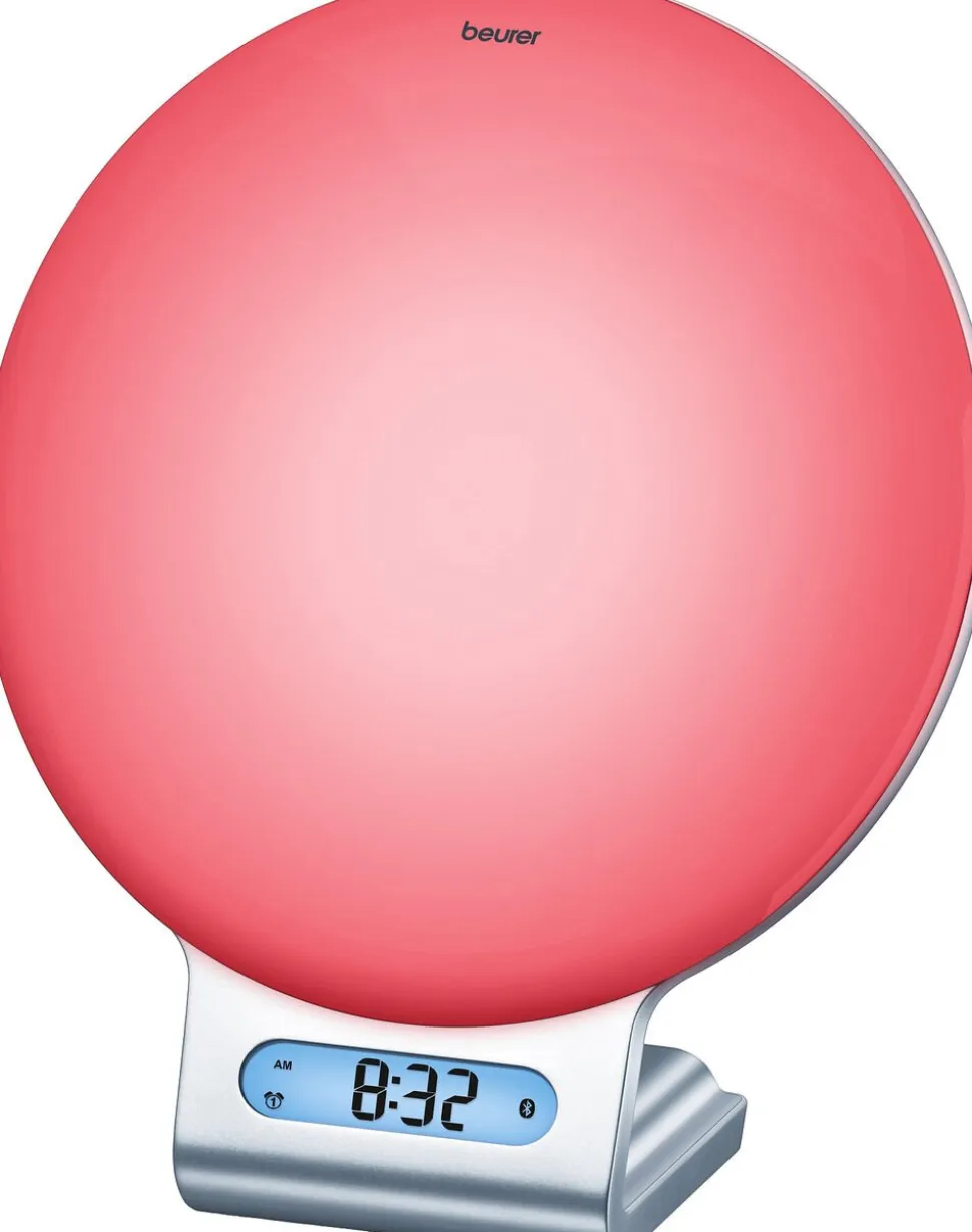 En wakeup light, der både hjælper dig med at vågne frisk og falde lettere i søvn. Vågn til simuleret solopgang og en af de 6 melodier. Fald i søvn til simuleret solnedgang og en af de 4 søvndyssende melodier. Den har Mood Light og 256 forskellige farvenuancer, som let kan indstilles i den gratis app Beurer LightUp. WL 75 har desuden radiofunktion med hukommelse til 10 kanaler. Du kan også tilslutte din smartphone og lytte til din egen musik, via det medfølgende AUX kabel. Den har både alarm- og snoozefunktion på 1-30 min. Den lyser med op til 2000 lux.