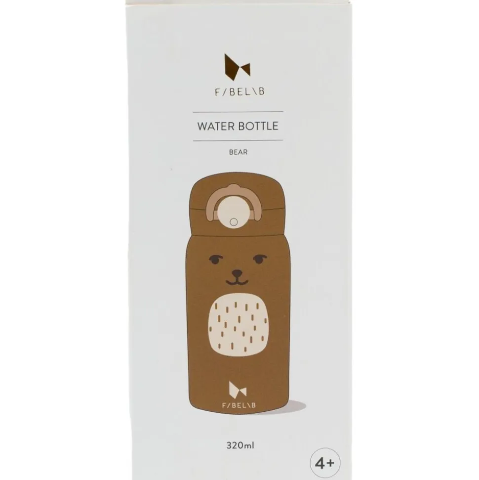 Fabelabs nye vandflaske – Bear – Oker er perfekt at tage med på farten eller til børnehave og skole. Vandflasken er nem for de små at bruge og drikke fra med den lette, men sikre åbning, der forhindrer, at vandflasken åbner sig inde i skoletasken. Der er tilføjet et drikkespræk for sikker drikning, og den passer perfekt ind i siderne på vores nye Rygsæk – Stor. Vandflasken rummer 320 ml og er lavet af 18/10-klasse rustfrit stål og BPA-fri PP plastiklåg og silikoneforsegling. Vandflasken holder drikkevarer kolde i 24 timer og varme i 10 timer og modtager eller afgiver ikke smag ved brug. Pleje og brug: Vask vandflasken i koldt eller lunt vand med en blød svamp eller børste for at rense indersiden. Hold vandflasken ren for at undgå lugt, og opbevar vandflasken uden skruet på låget for optimal tørring. Til grundig rengøring kan du fylde vandflasken med varmt vand indeholdende 10 % eddike i 30 minutter og endelig rengøre med rent vand og en blød børste. Advarsel: Brug den ikke til kulsyreholdige drikkevarer, saltede supper osv. Rengør ikke vandflasken i opvaskemaskinen, da dette vil reducere den termiske effekt. Brug ikke slibemidler eller skuremidler. Mad sikker – EU-standard, LFGB – Fødevarekvalitetstest, DG CCRF – Fødevarekvalitetstest Ikke egnet til børn under 4 år