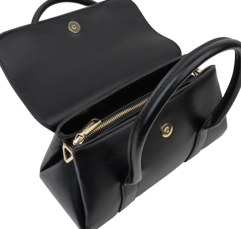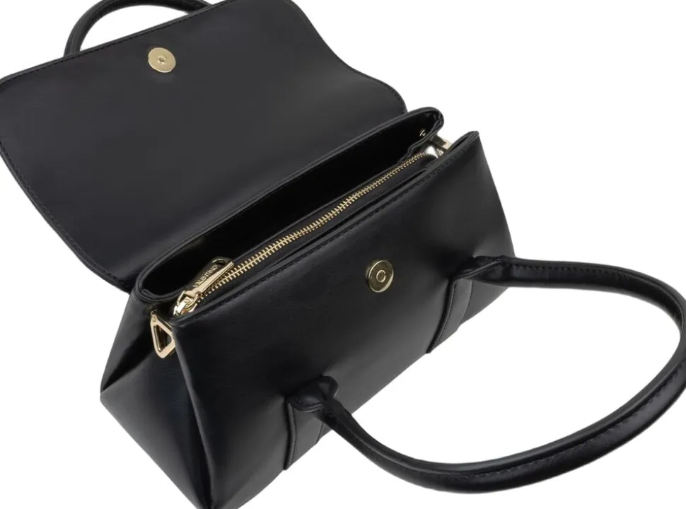 Kompakt Valentino Bags Kompakt-håndtaske fra West Re-serien er fremstillet af glat PU med en elegant finish. De buede tophåndtag og den diskrete flaplukning skaber en tidløs silhuet, mens den aftagelige skulderrem giver alsidighed til dage på farten. Tasken er fuldendt med let guldtonet hardware og det kendte Valentino-logo for det forhøjede touch