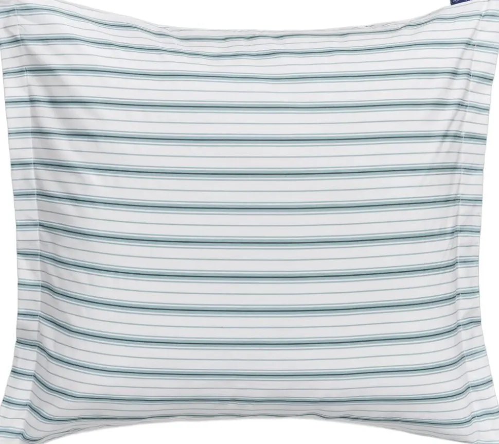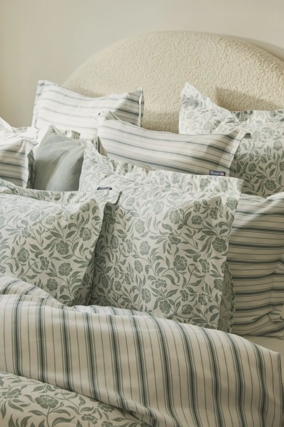 Nyd den friske komfort med vores sengesæt i stribet bomuldspoplin i sprød hvid og eukalyptusgrøn. Det er fremstillet af blød, kølig og absorberende poplin. Denne høje kvalitet giver en glat og stilren finish. Sættet er en del af vores Spring collection og består af et pudebetræk med kuvertlukning og korte sider med flæse samt et dynebetræk med gummiknapper med Lexington-logo. Dette sengesæt er Oeko-tex-certificeret for at give et bæredygtigt touch og bringer tidløs stil og komfort til dit hjem.