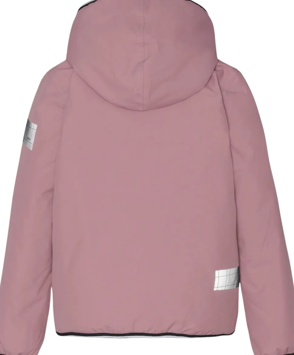 Smart mørkegrøn vind- og vandtæt allround jakke. Jakken har en fleeceforet aftagelig hætte, lommer i siderne, elastik ved ærmerne, og har den velkendte Molo stjerne refleks bagpå samt på det ene ærme, så børnene ses i mørket. Bukserne har desuden foret med en invendig flat padding, som gør dem bløde og hjælper til at holde på varmen. Ydermateriale, for, samt inderstof er fremstillet af delvist genanvendt polyester fra brugte plastikflasker og andet restaffald.Herved bruges der langt færre ressourcer samt en væsentlig mindre udledning af CO2.Miljøvenlig vand- og smudsafvisende coating uden brug af kemikalier som PFOS, PFOA og lign. Vandsøjletryk: 5.000 mm. Åndbarhed: 5.000 g/m2/24t.