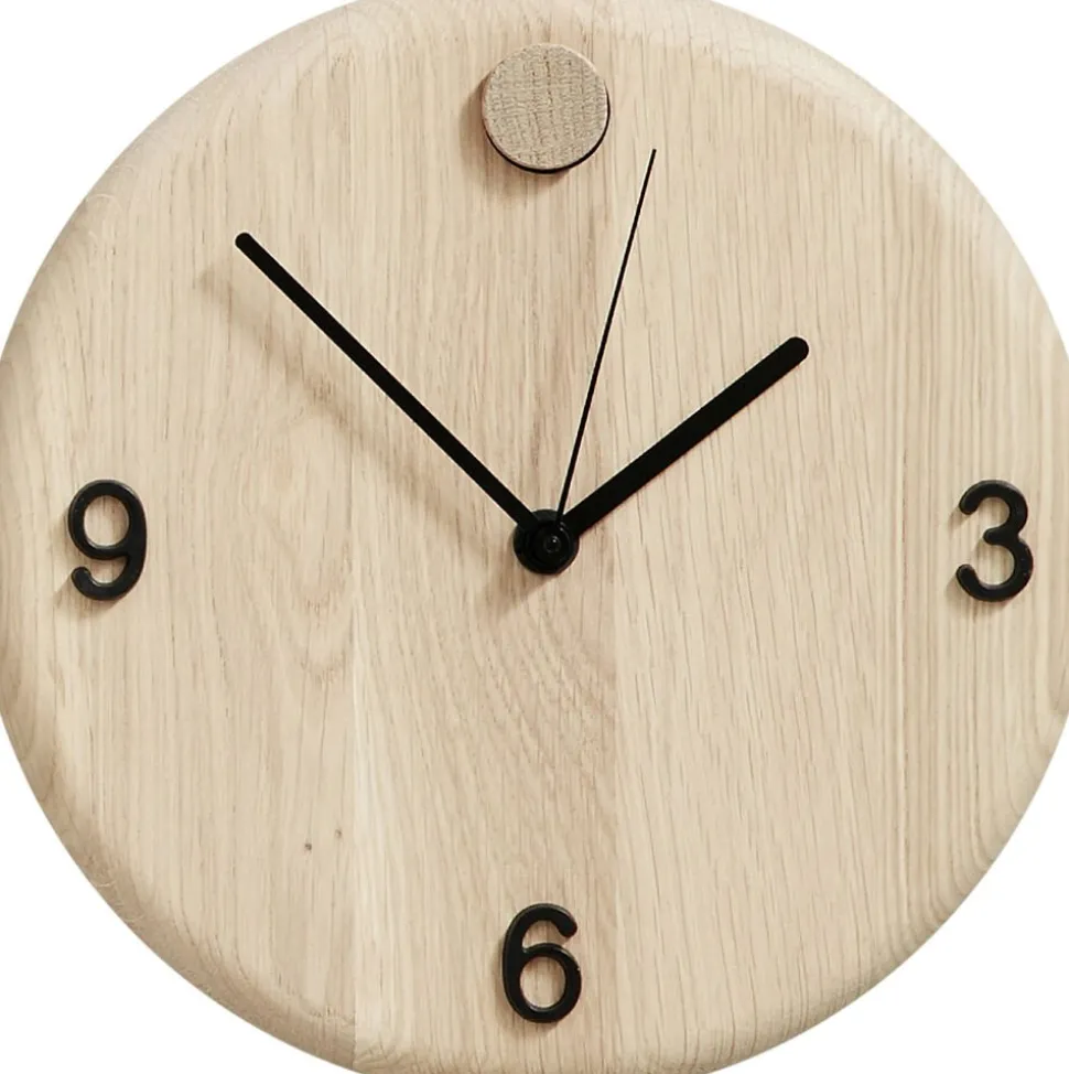 Wood Time er et anderledes og spændende ur, hvor urskiven er fremstillet af massivt eg, hvilket får uret til at fremstå sanseligt og organisk. Der medfølger udskiftelige talsæt (3, 6, 9) i hhv. grøn, orange og sort. Dermed kan du let selv skifte tallene alt efter hvilken farve, der tiltaler dig. Uret er designet af Henrik Sørig Thomsen