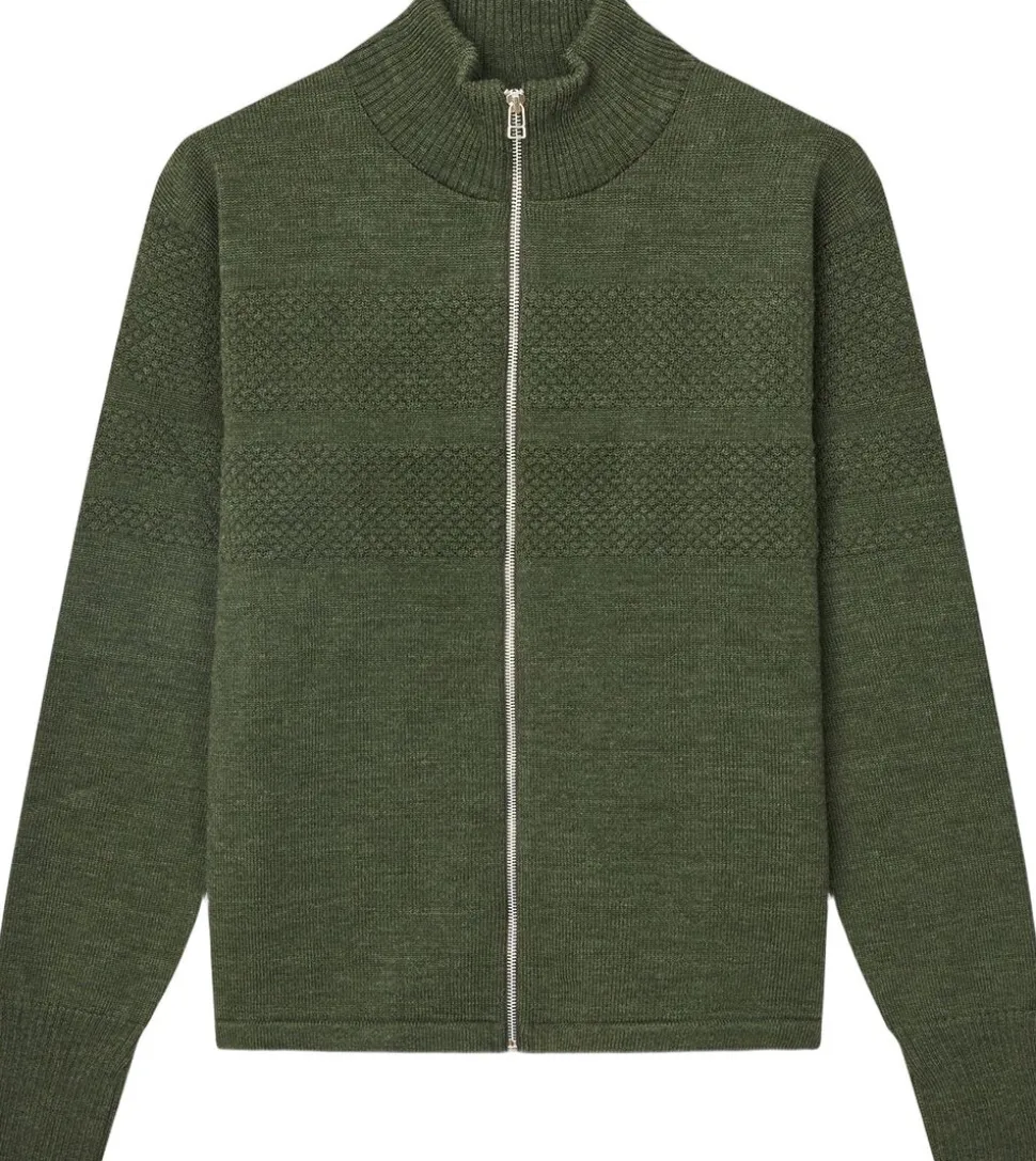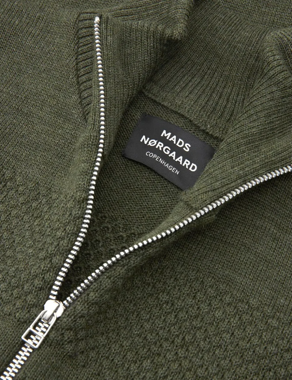 Mads Nørgaard – Copenhagens ikoniske sømandsstrik. Denne model har været en del af kollektionen i enormt mange år og er blevet en klassisker. Den har som sædvanlig en høj krav, lange ærmer og lynås. Den er strikket i en kraftig kvalitet af 100% uld.