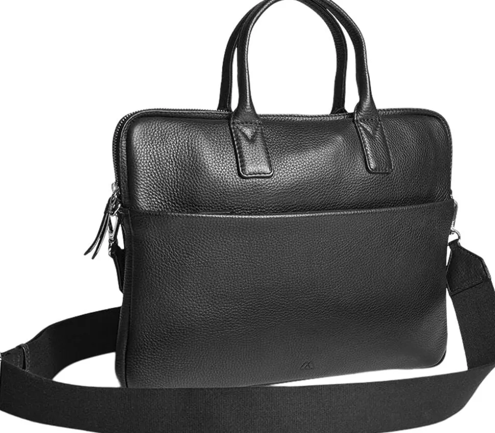 Wrap Laptop Bag fra Markberg er den perfekte arbejdstaske, i det blødeste kalveskind. Tasken har plads til en 14 tommer computer. Tasken har ét stort rum, og en åben lomme ved siden af. Tasken har dertil en stor skjult frontlomme med lynlås. Tasken har 2 små hanke, men der følger en bred crossbody strop med, som både er justerbar og aftagelig. Taskens foer er i 100% bomuld.