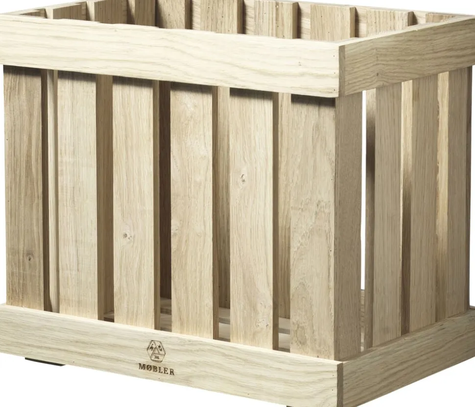 Stilrene og praktiske kasser fra FDB Møbler, disse smukke kasser er fremstillet af massivt egetræ og er velegnede til både udendørs og indendørs brug. De udgør ideelle opbevaringsløsninger til alt fra frugter til bilnøgler og andre genstande.