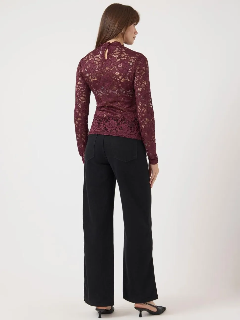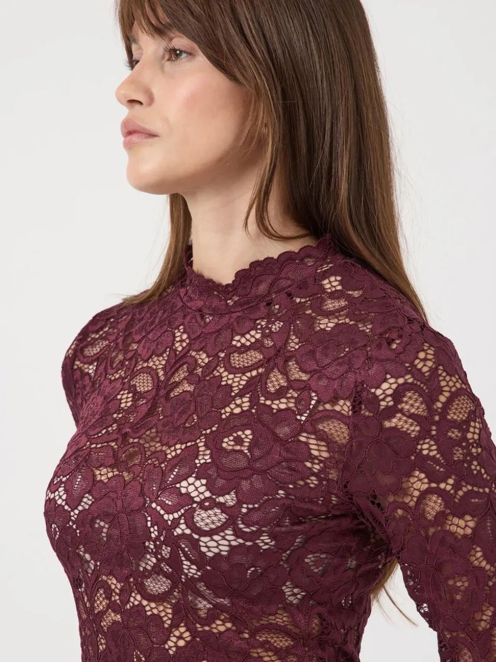 Denne vare er lavet i et fint blondemateriale med feminine mønstre, der giver et elegant look,.
