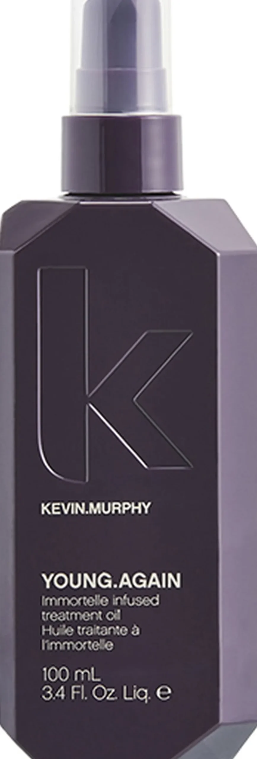 YOUNG. AGAIN fra KEVIN. MURPHY er en ultralet, plejende leave-in olie, der intenst plejer, blødgør og beskytter håret. Indeholder Burreolie som styrker håret og tilfører det elasticitet og glans, Sukkerrørsekstrakt som giver hårstrået en glat, skinnende overflade, og Immortelle der er en rig skønhedsolie med essentielle fedtsyrer, som tilfører fugt og fremmer hårets vækst. Forkæl dit hår med intens pleje for et smukt udseende. ”Be YOUNG. AGAIN”.